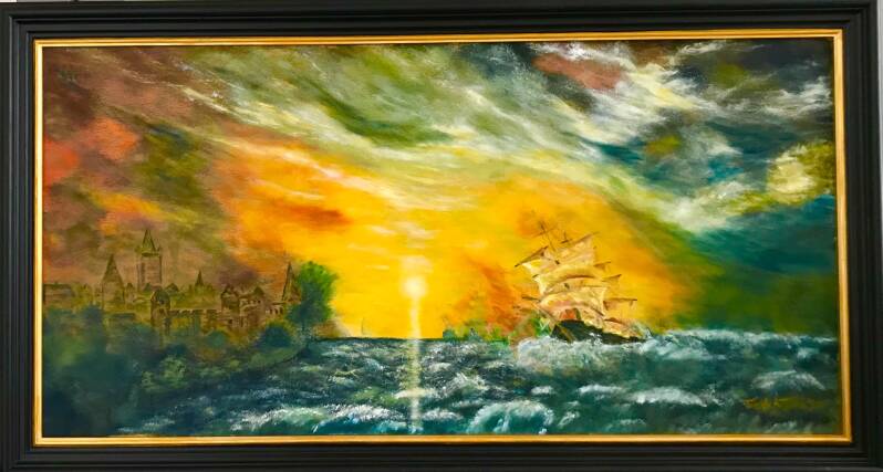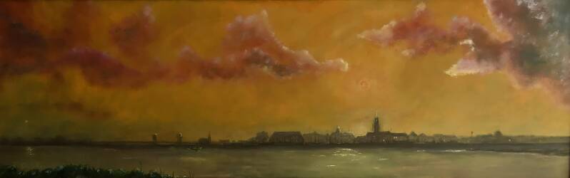 front vanuit IJsselmuiden,geschilderd naar litho in 1850, door de hr meier ,aangeboden ,aan toen malige burgemeester ,Wittewaal van stoetewegen.